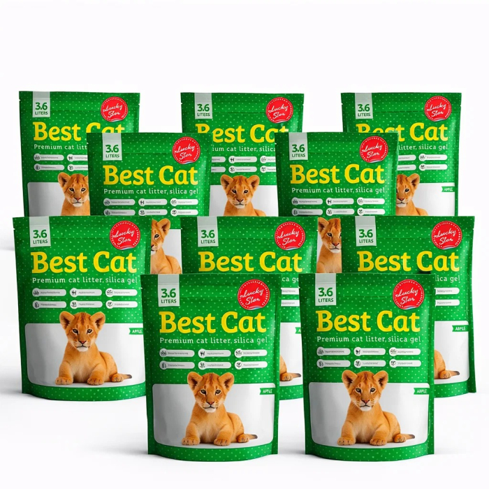 Set Asternut igienic pentru pisici Best Cat, Mar verde, Silicat, 10 x 3.6l