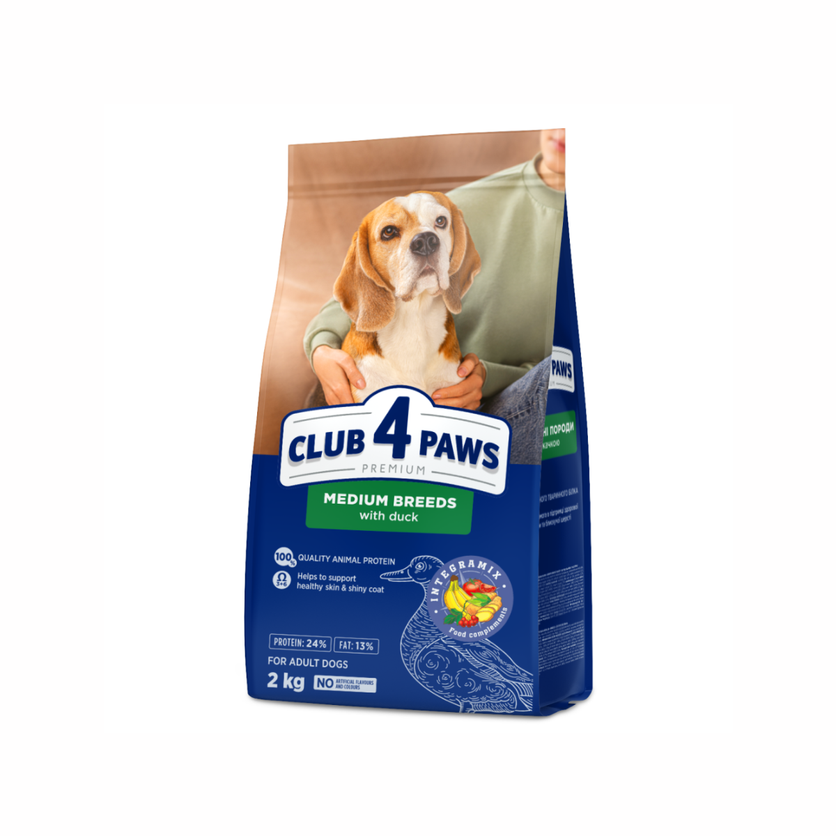 Club 4 Paws Premium – Hrana uscata completa pentru caini adulti de talie medie, cu rata, 2kg